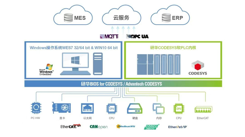 傳統工業現場只需要簡單的邏輯控制,隨著智能制造的發展,客戶的現場應用要求PLC性能提升,例如與MES系統對接、整合高級語言行業算法、整合多種現場總線等需求,AMAX-5570E搭載CODESYS,可以同時支持高級語言與IEC-61131-3編程,支持PROFINET、Ethernet IP、EtherCAT等多種現場總線,同時可以通過OPC UA/MQTT等與MES系統對接,一臺PAC可以覆蓋IPC+PLC系統功能,簡化現場設備數量、節約安裝空間、降低維護成本。
