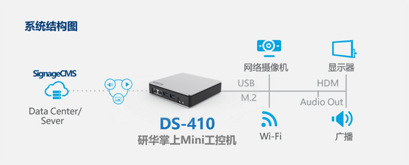 DS-410是一款小巧而強大的設備,突破了Mini PC的標簽。其緊湊的26毫米厚度的框架可以適用于單個或雙面中小型顯示器支架。這些顯示設置對于即時信息傳遞和指導至關重要,在旅客通關或是在中島航空區域和海關關口為游客提供指導。