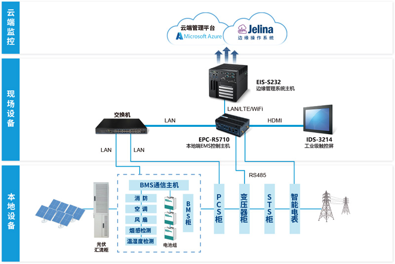 研華深耕工業物聯網領域已有40年,憑借豐富的行業解決方案實踐經驗,為儲能柜行業提供全面的端邊云軟硬件一站式集成方案: